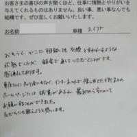 鈑金塗装をしたお客様のご感想(弘前市 スズキ・スイフト)
